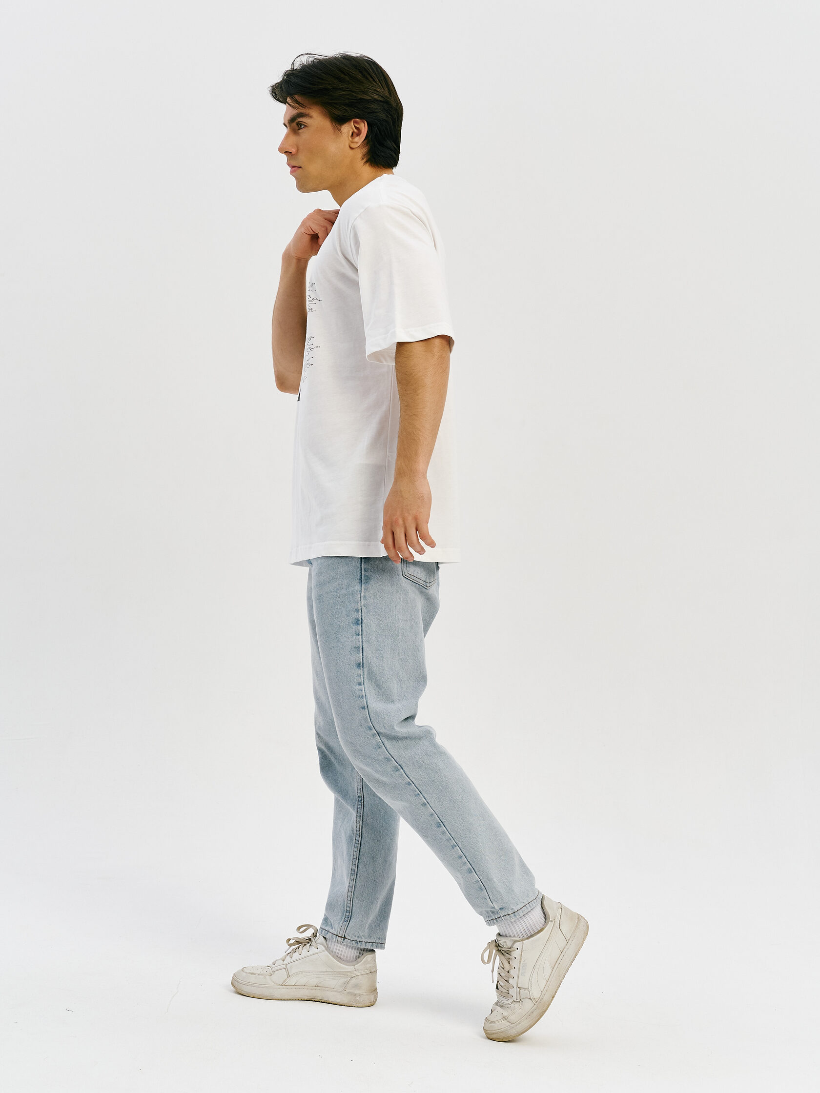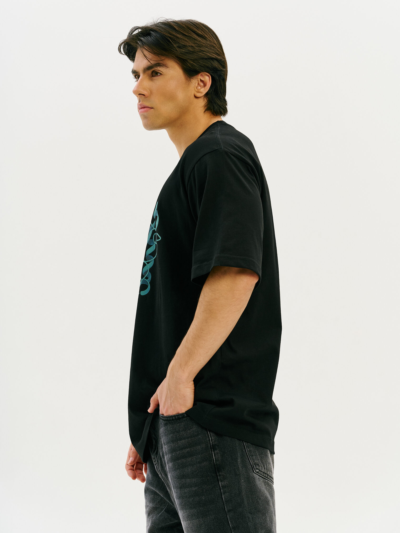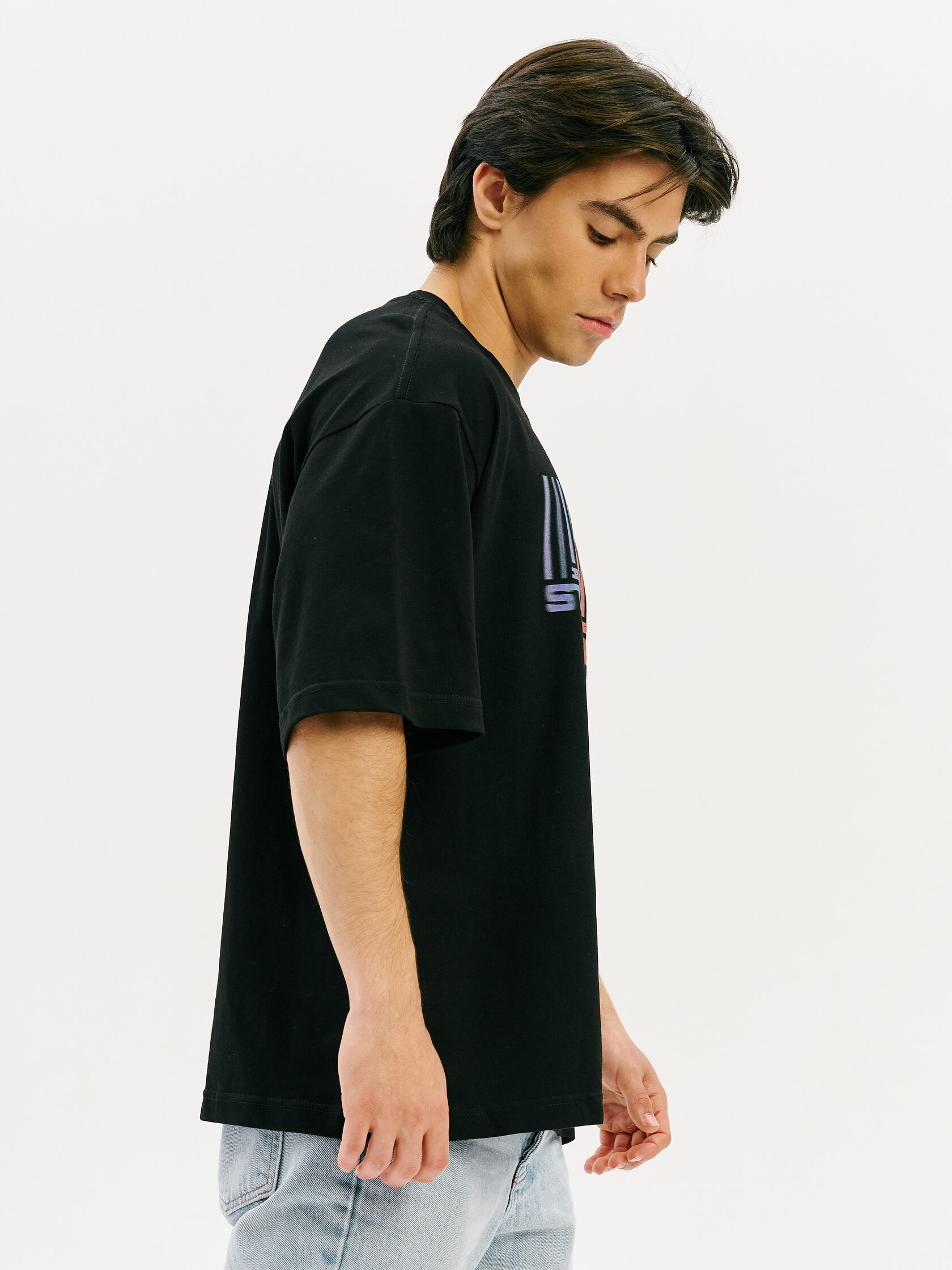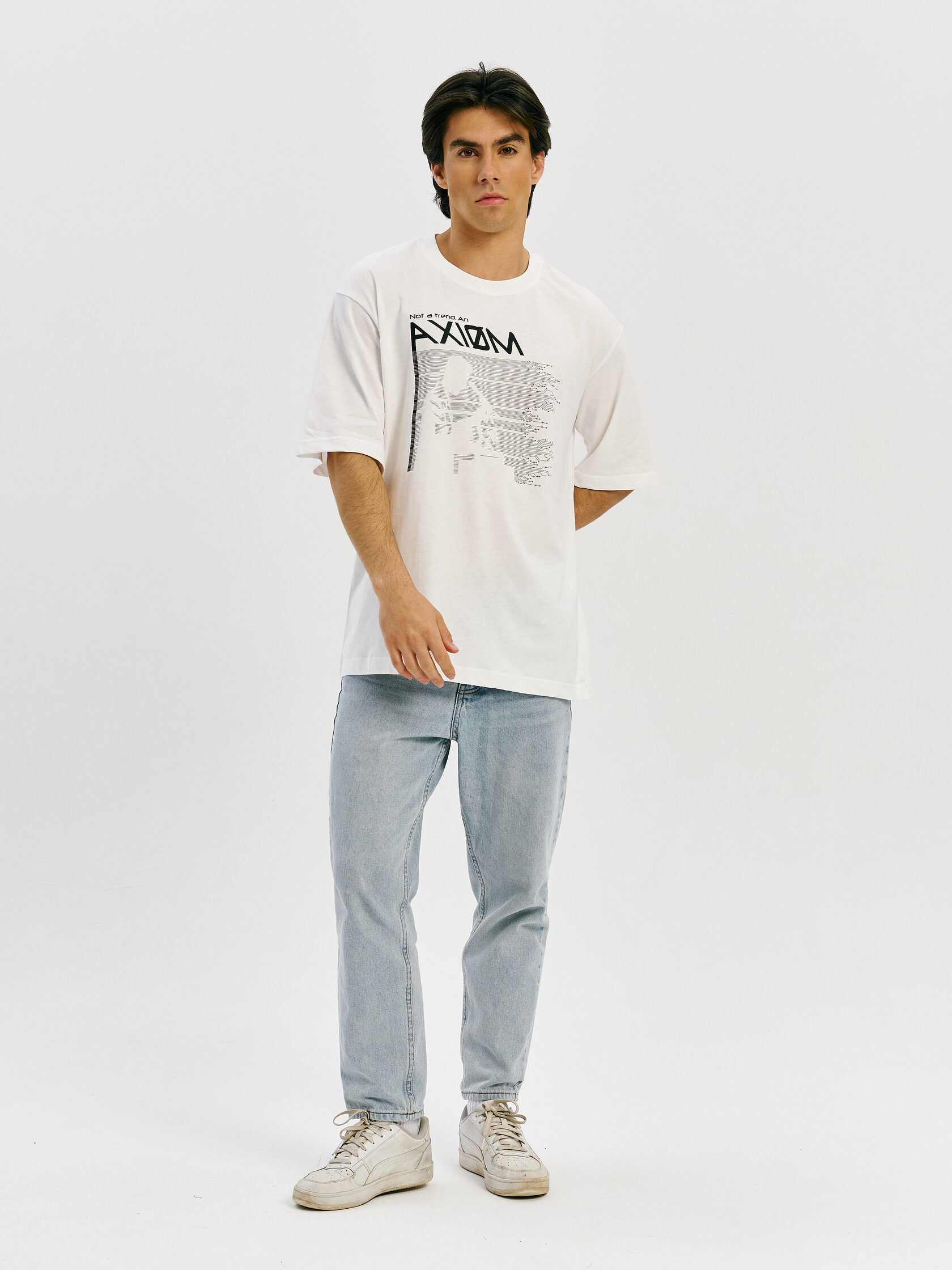 Футболка с принтом, основанным на спектре звезды — её уникальном энергетическом профиле. Визуальный мотив напоминает штрихкод, но в основе — реальные данные из спектроскопии. Графика отсылает к астрономии и аналитике света как способу познания Вселенной.