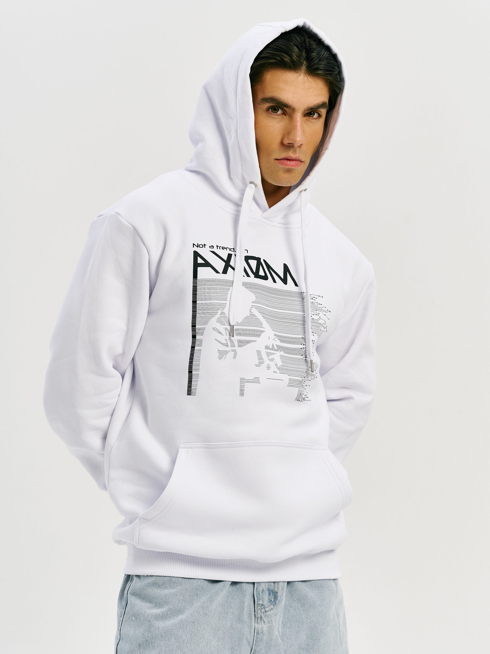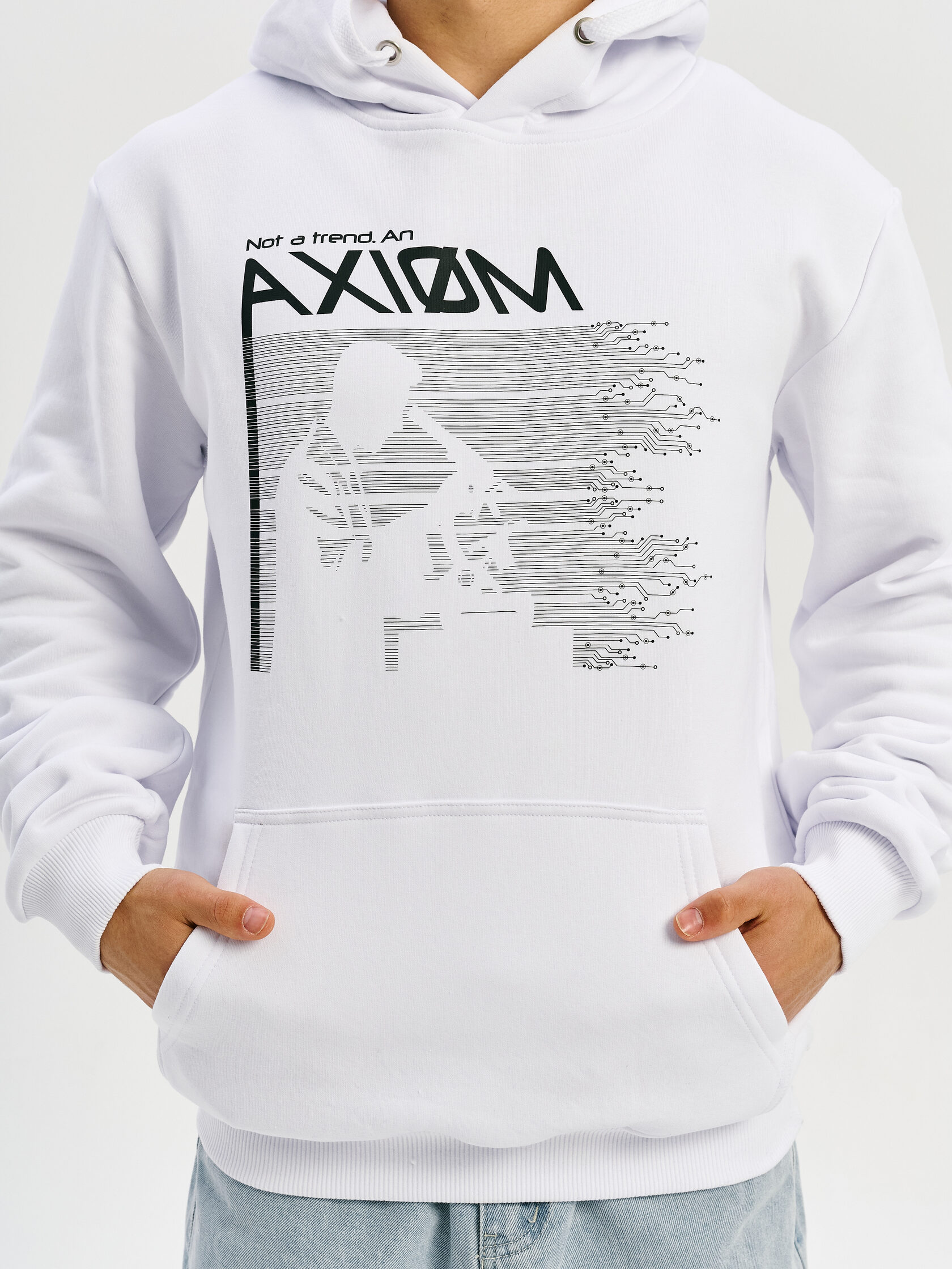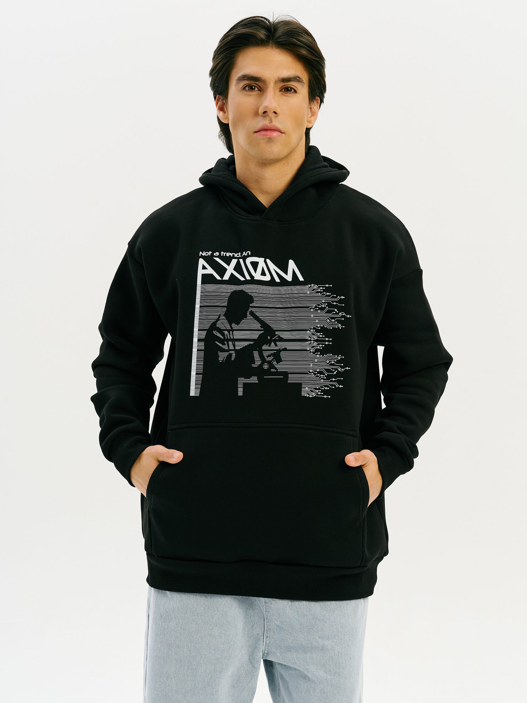 Базовое худи с акцентом на технологичную эстетику. Универсальный силуэт и гладкая поверхность ткани делают его основой для любого образа — от лаборатории до улицы.
