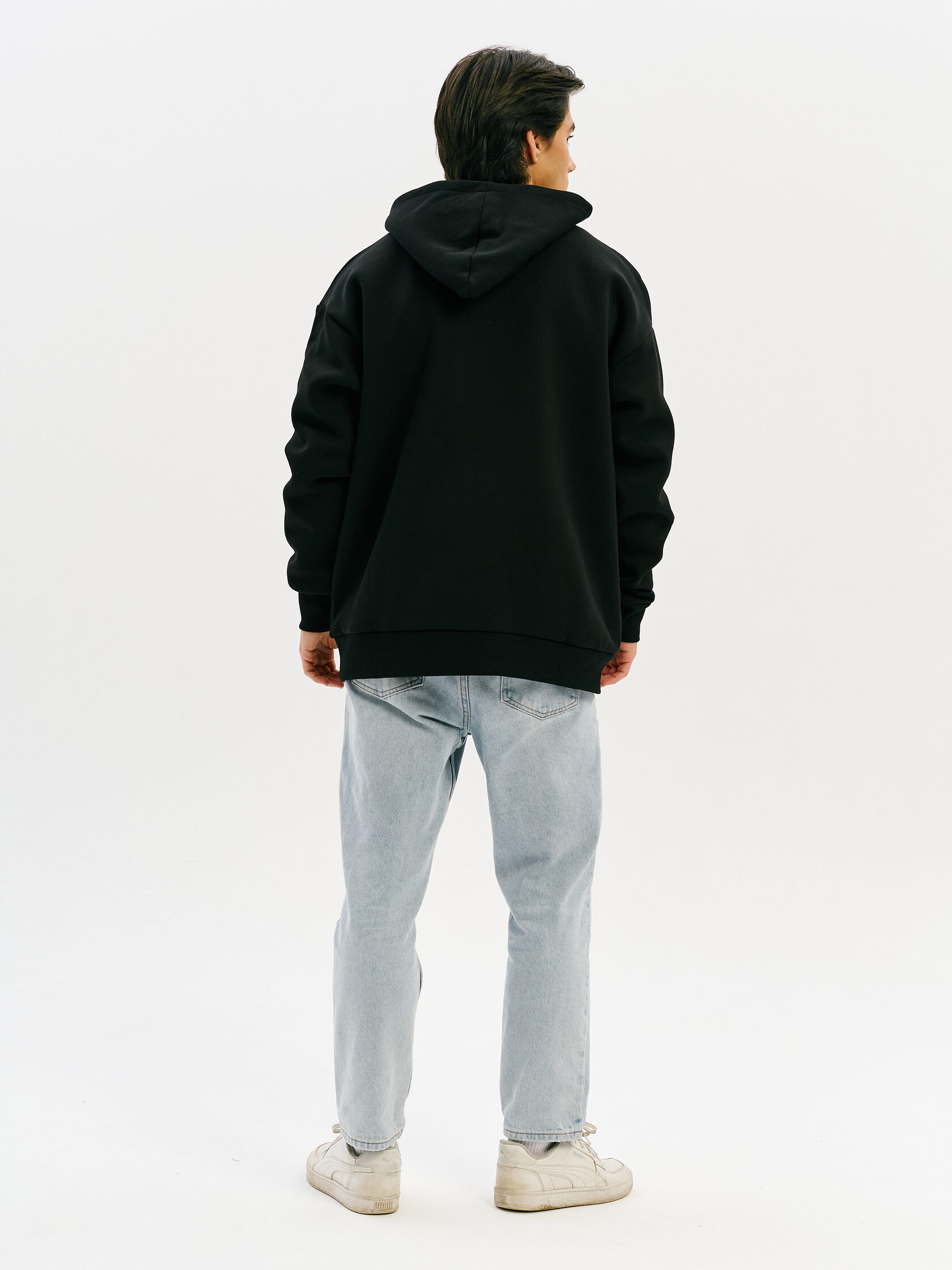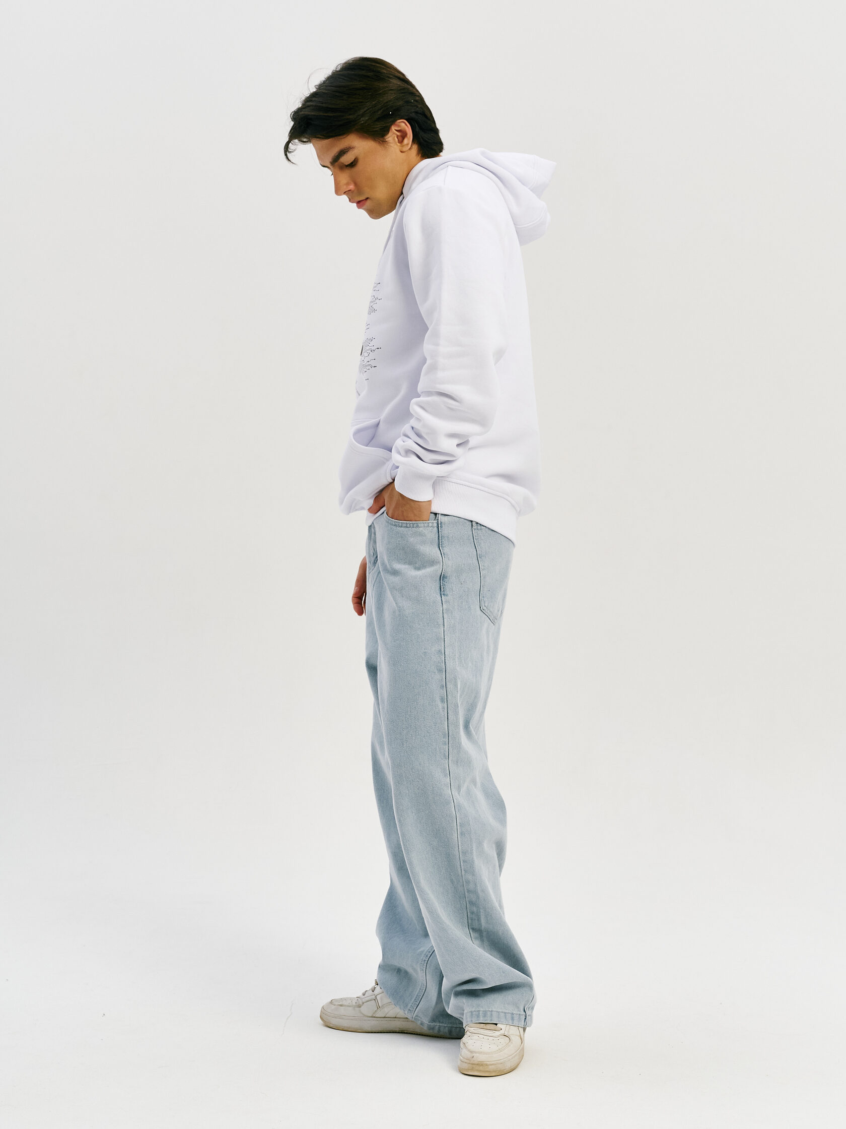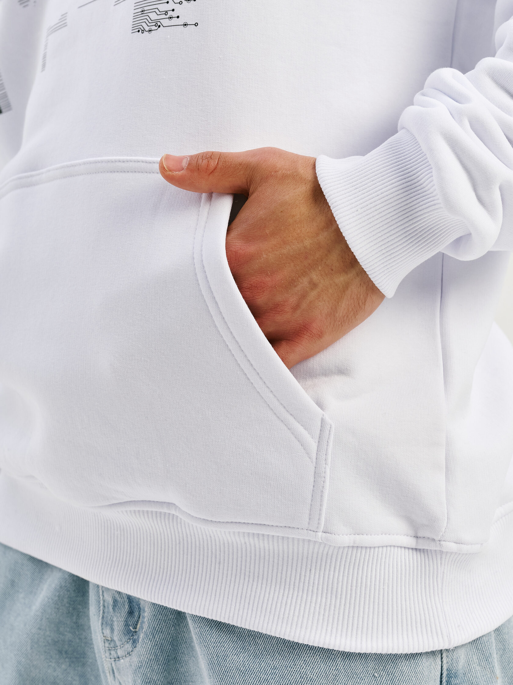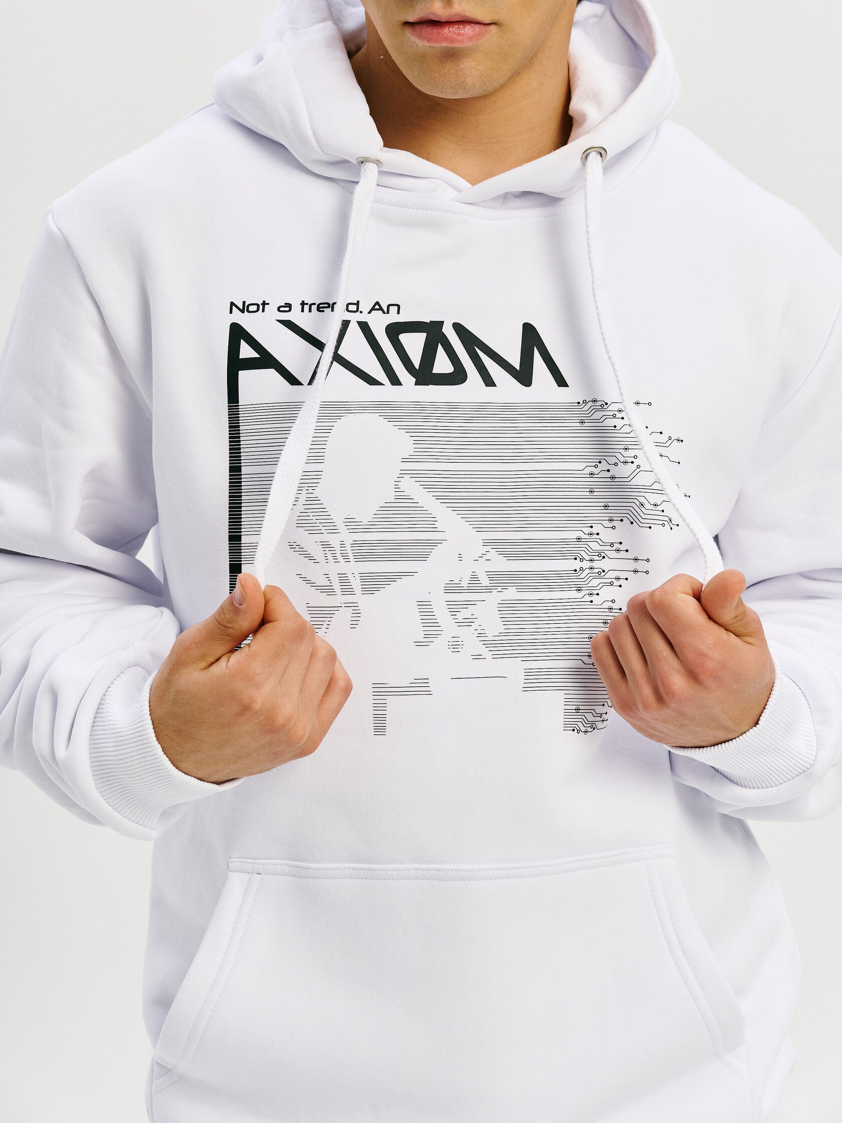 Базовое худи с акцентом на технологичную эстетику. Универсальный силуэт и гладкая поверхность ткани делают его основой для любого образа — от лаборатории до улицы.