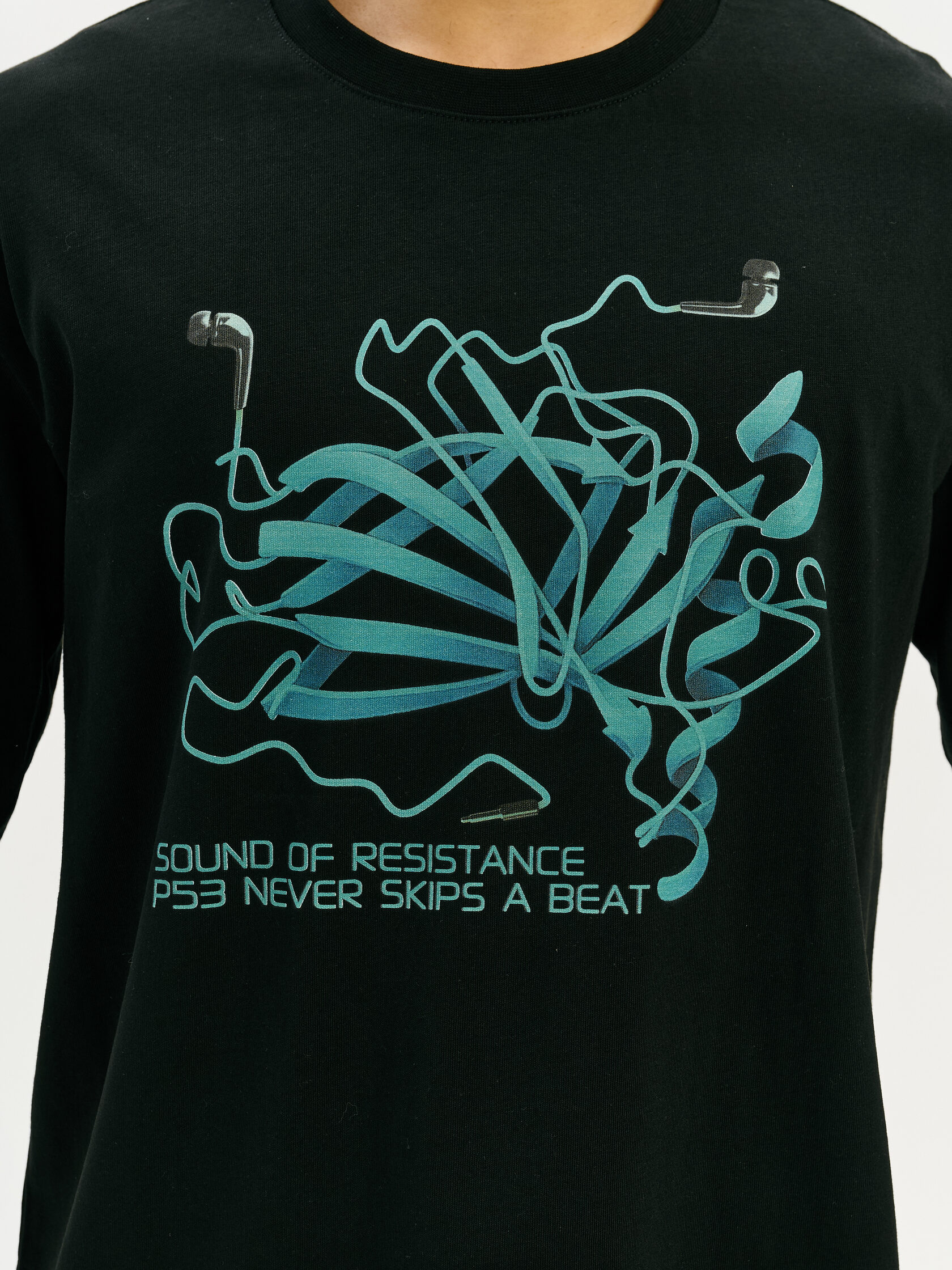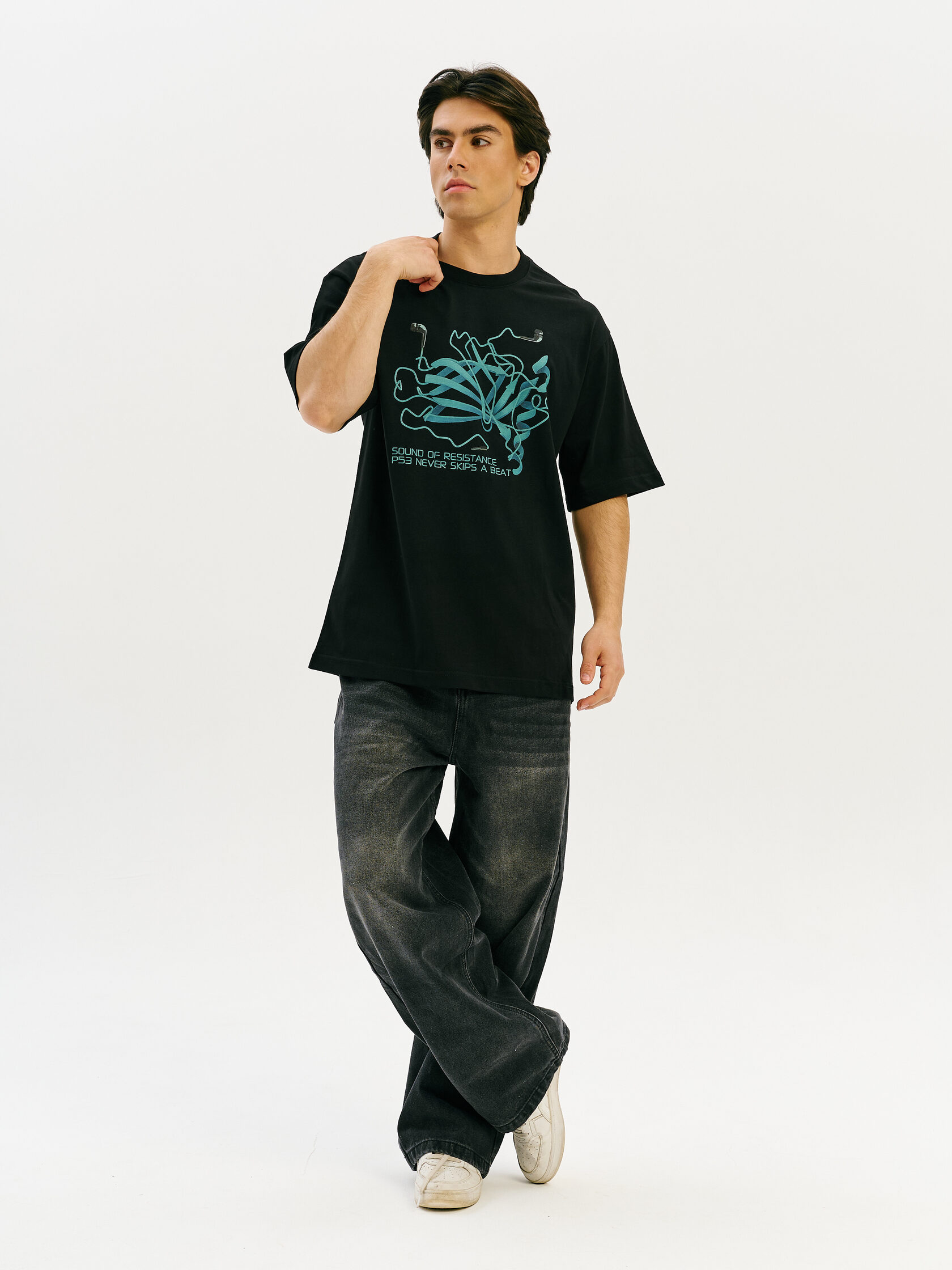 Футболка, вдохновлённая белком p53 — ключевым регулятором клеточного цикла и символом естественной защиты. Графика отсылает к биомолекулярным структурам и напоминает: устойчивость начинается изнутри.