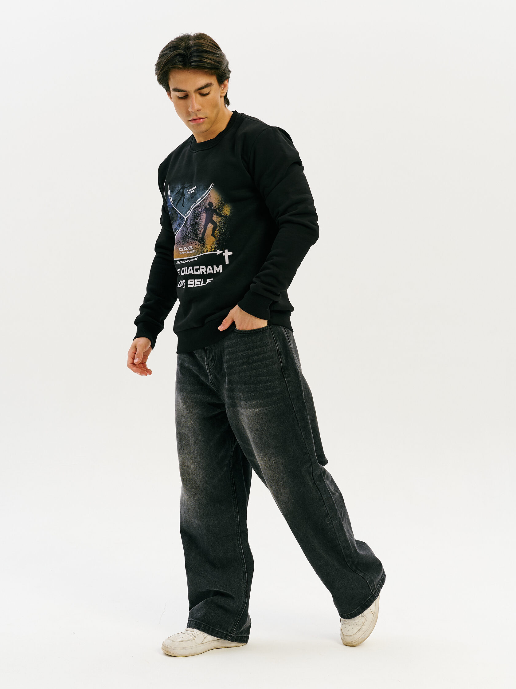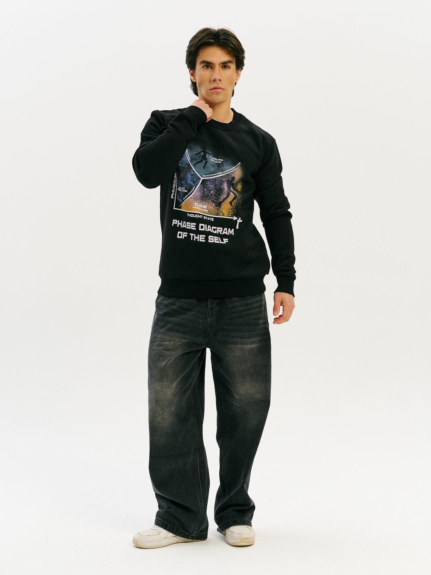 Свитшот из премиального хлопка с уникальным дизайном "Mental Diagram", вдохновлённым идеей переходов между состояниями — от мыслительных до физических. Мягкий, тёплый и универсальный — для работы, прогулок и вдохновения.