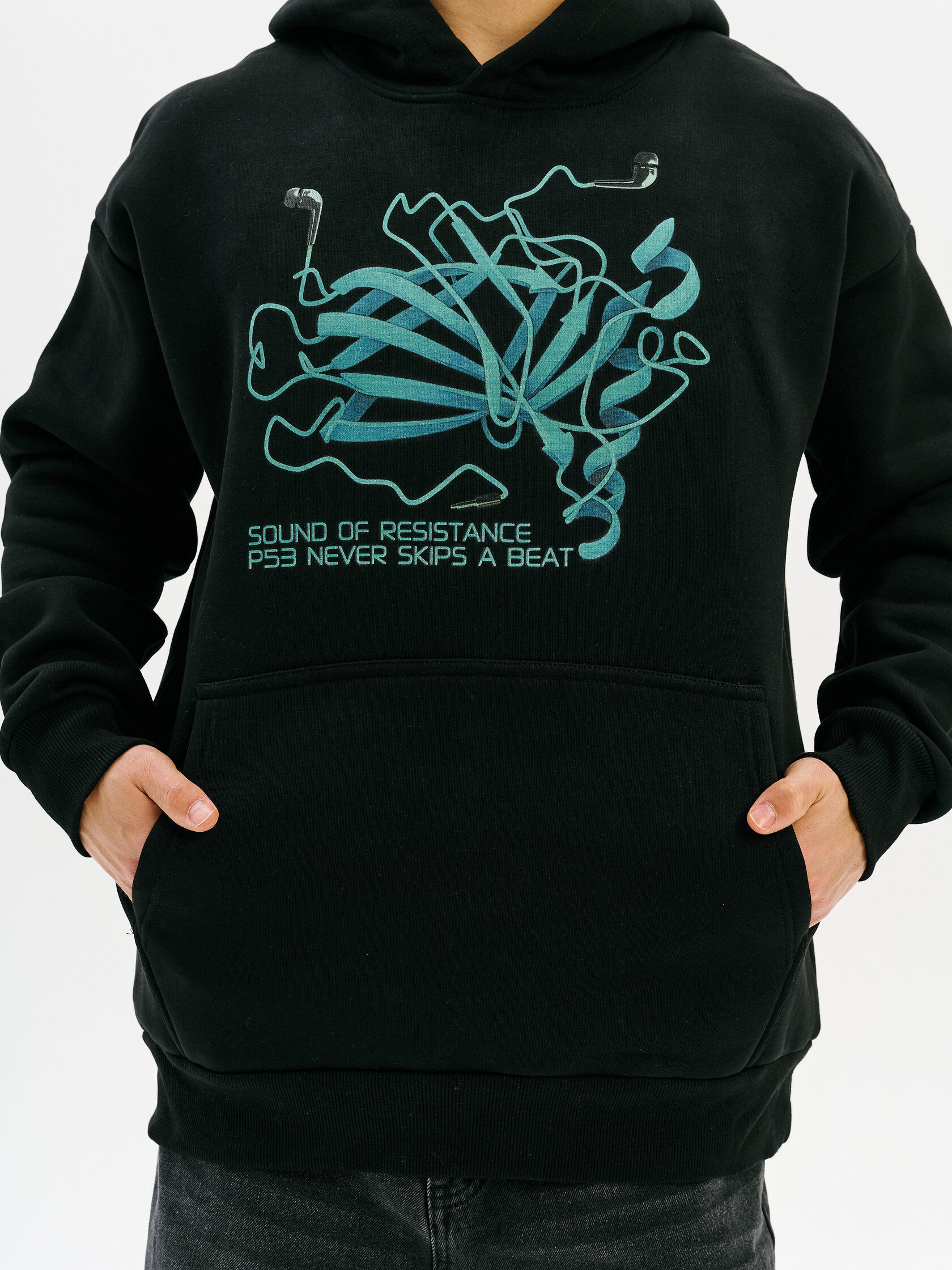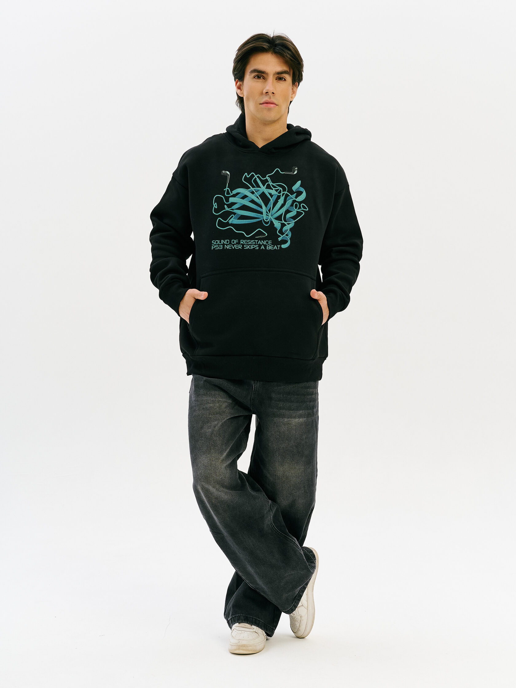 Худи с графикой, посвящённой белку p53 — одному из ключевых защитных механизмов организма на клеточном уровне. Визуальный образ отсылает к структурам молекулярной биологии и идее устойчивости перед внутренними сбоями. Для тех, кто понимает ценность сопротивлению.