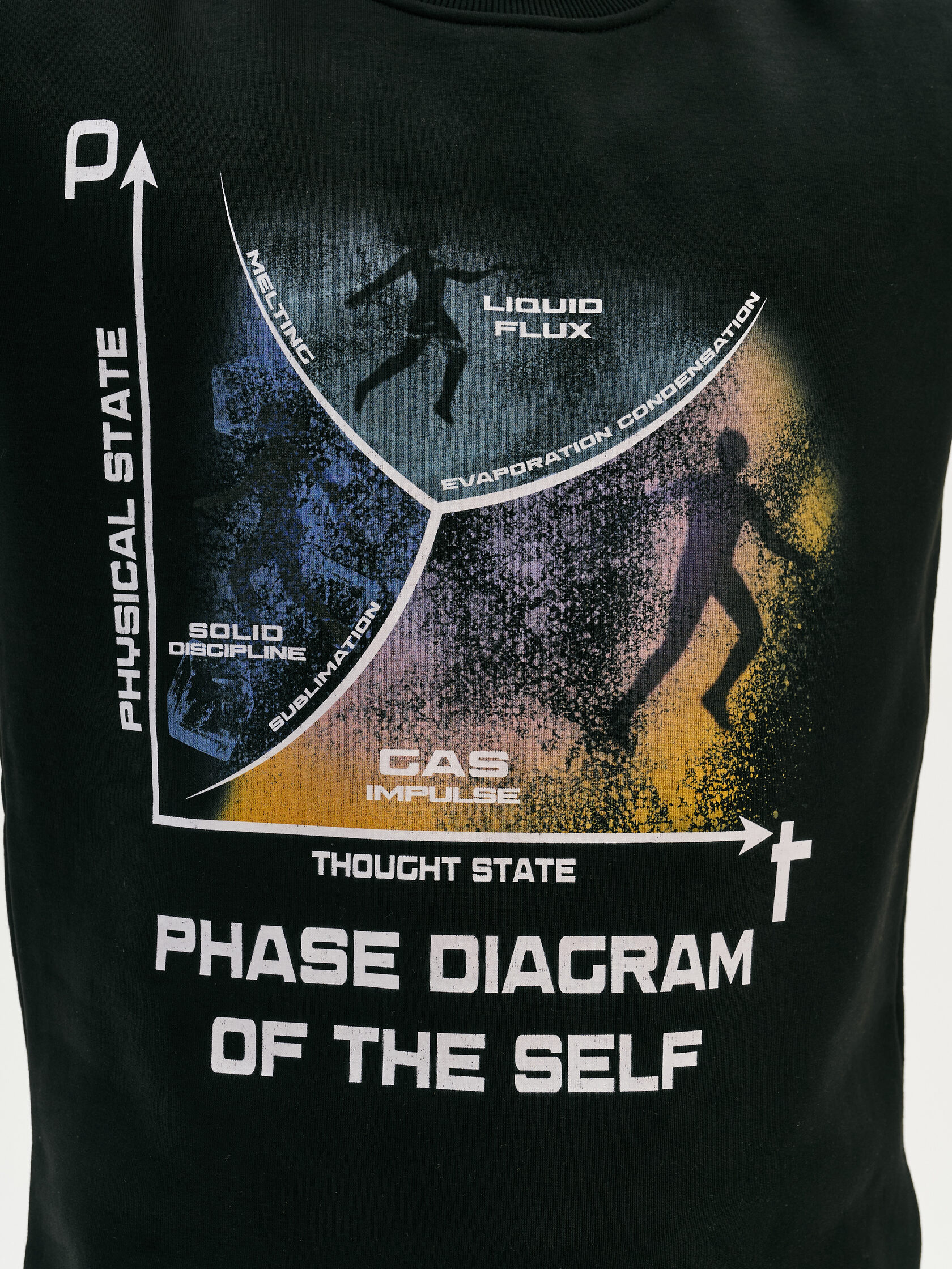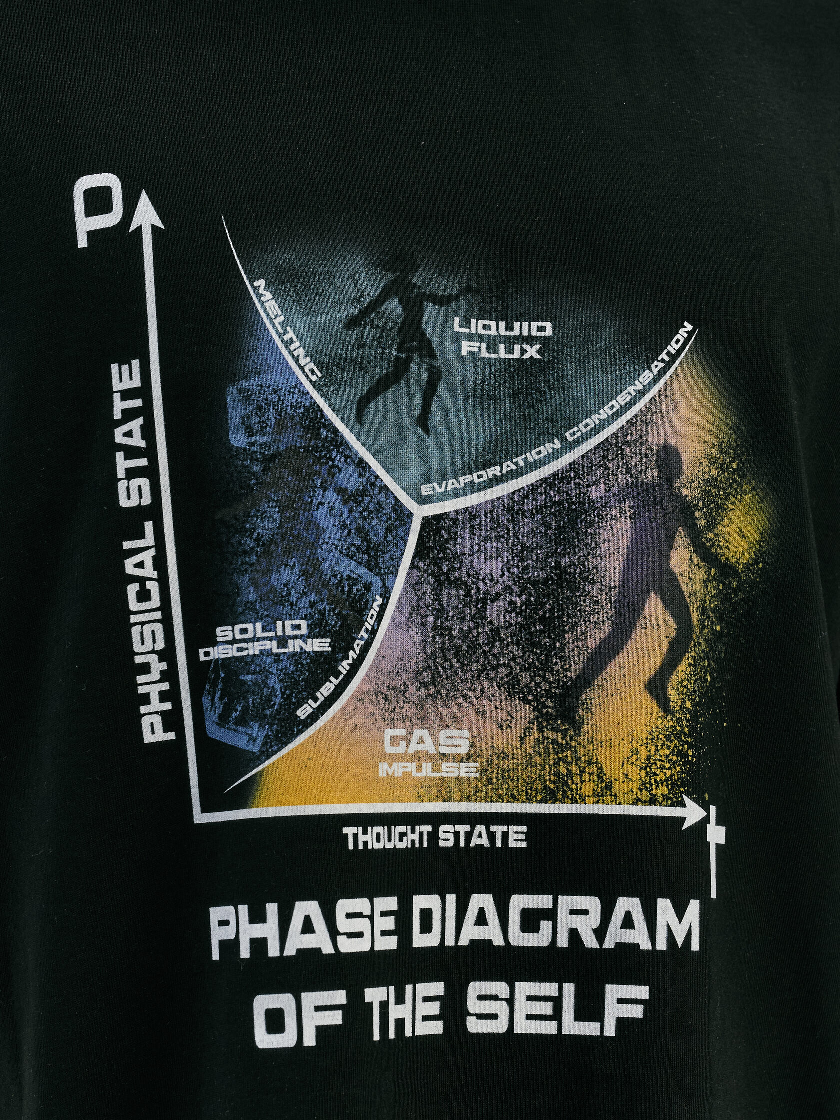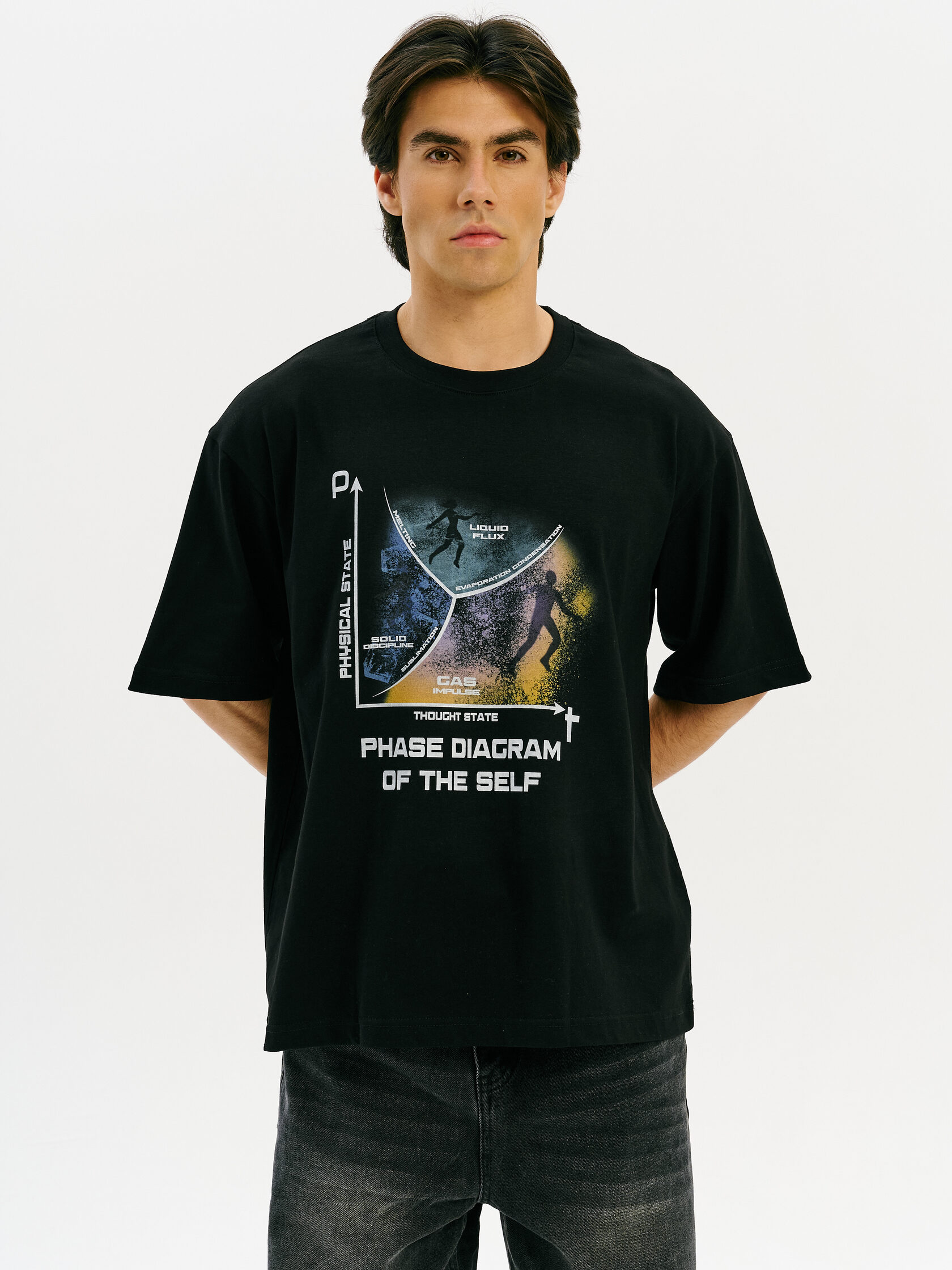Футболка с визуальной отсылкой к фазовым переходам — научная метафора нестабильности и баланса. Напоминание о том, что психика — сложная система, и каждое состояние имеет свою зону устойчивости.