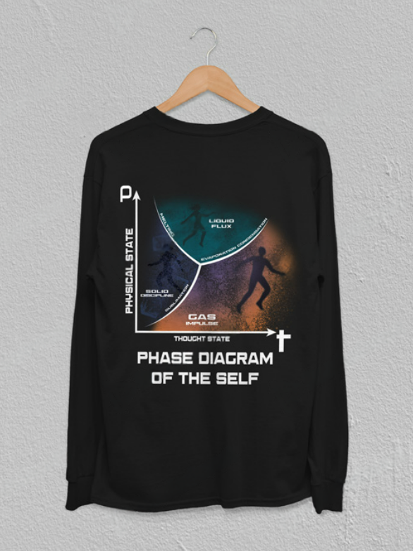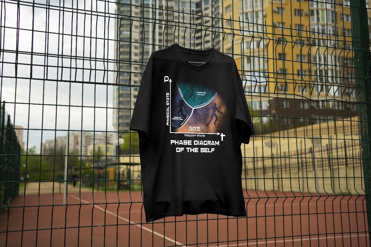 Футболка с визуальной отсылкой к фазовым переходам — научная метафора нестабильности и баланса. Напоминание о том, что психика — сложная система, и каждое состояние имеет свою зону устойчивости.