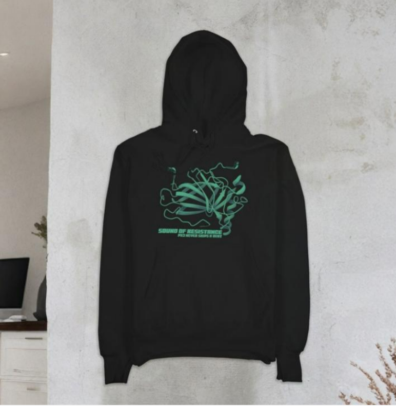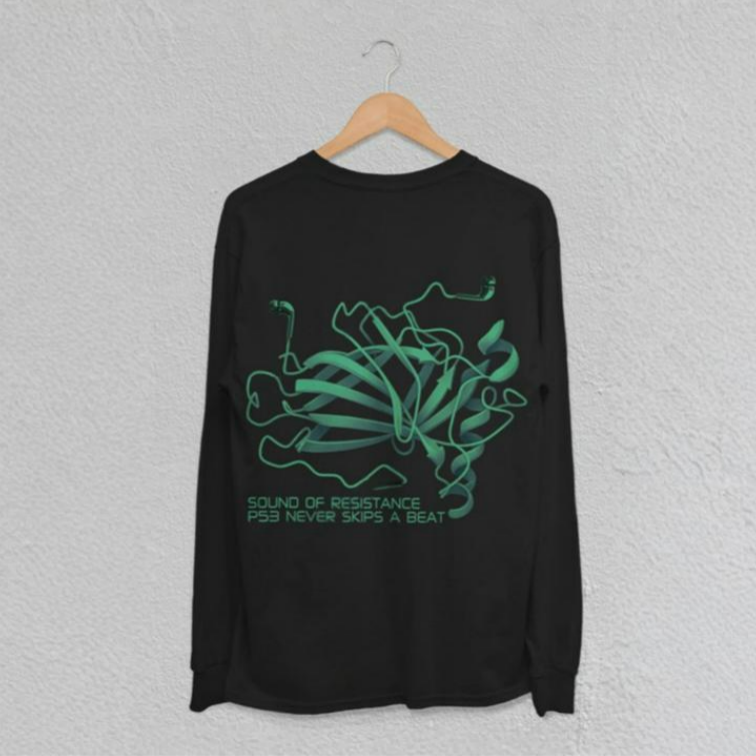Свитшот, вдохновлённый молекулярной биологией и ключевым белком p53 — природным механизмом клеточной защиты. Графика — напоминание о внутренних процессах, которые поддерживают стабильность и сопротивление разрушению.